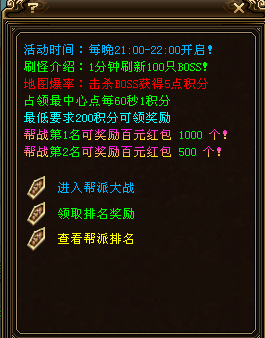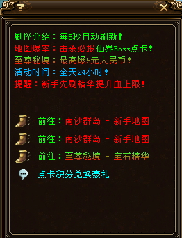 白漂玩家,先刷精华,刷点卡积分,点卡积分可兑换回馈!充值玩家,先兑换个 百星血池,血量直接达到10亿以上,挂机钱庄或凤凰即可!!